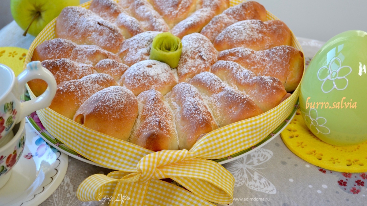 Очень вкусный и красивый пирог получился!😍Тесто нежнейшее, в готовых булочках очень пышненькое и воздушное.😊😊😊 Спасибо за чудесный рецепт. Я была на работе, зато у мамы был выходной, вот я и попросила ее приготовить это чудо, на которое у меня уже около недели были виды. Все остались в восторге.❤❤❤