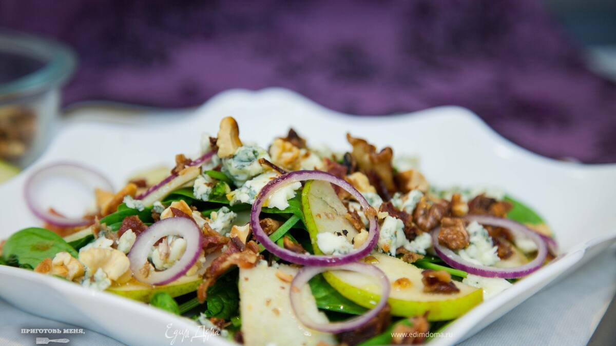 Салат со шпинатом, грушей и голубым сыром