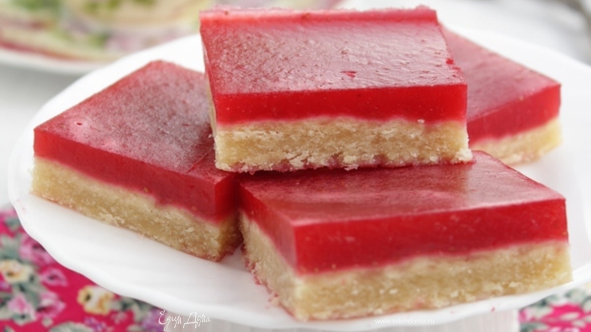 Песочные квадратики с бруснично-клубничным желе