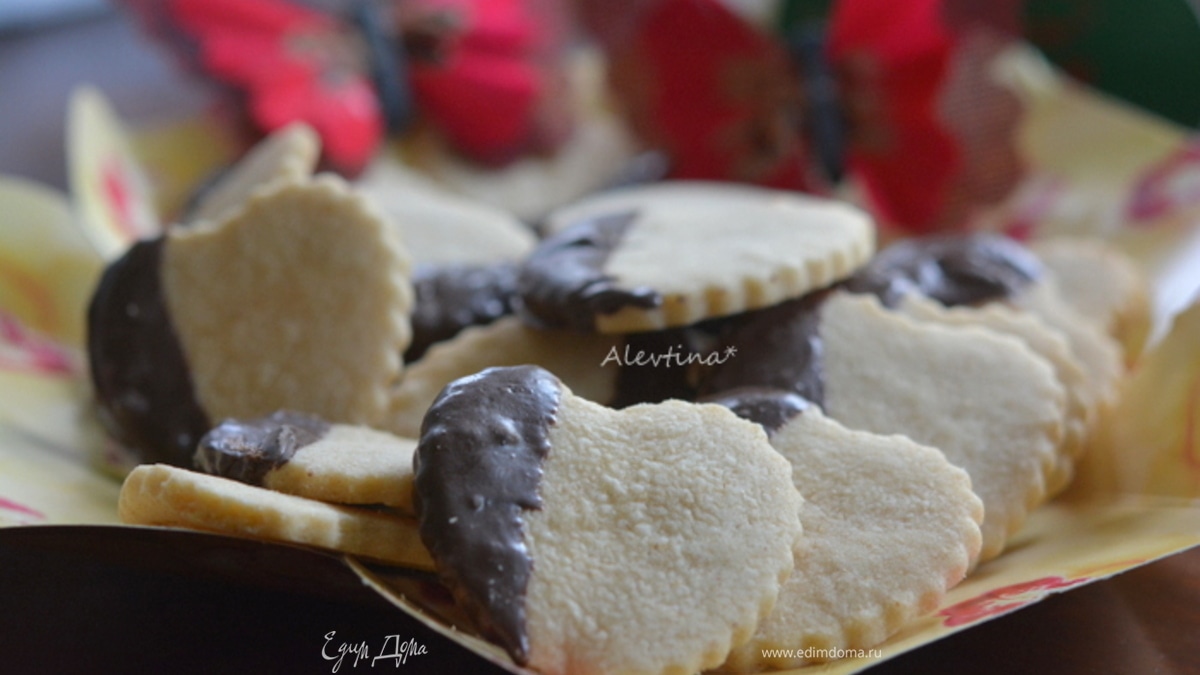 Окунать каждое готовое печенье в шоколад на небольшую часть. Выкладывать на противень с бумагой для выпечки дав подсохнуть или ставим в морозильник на 10 минут. - Шаг 9