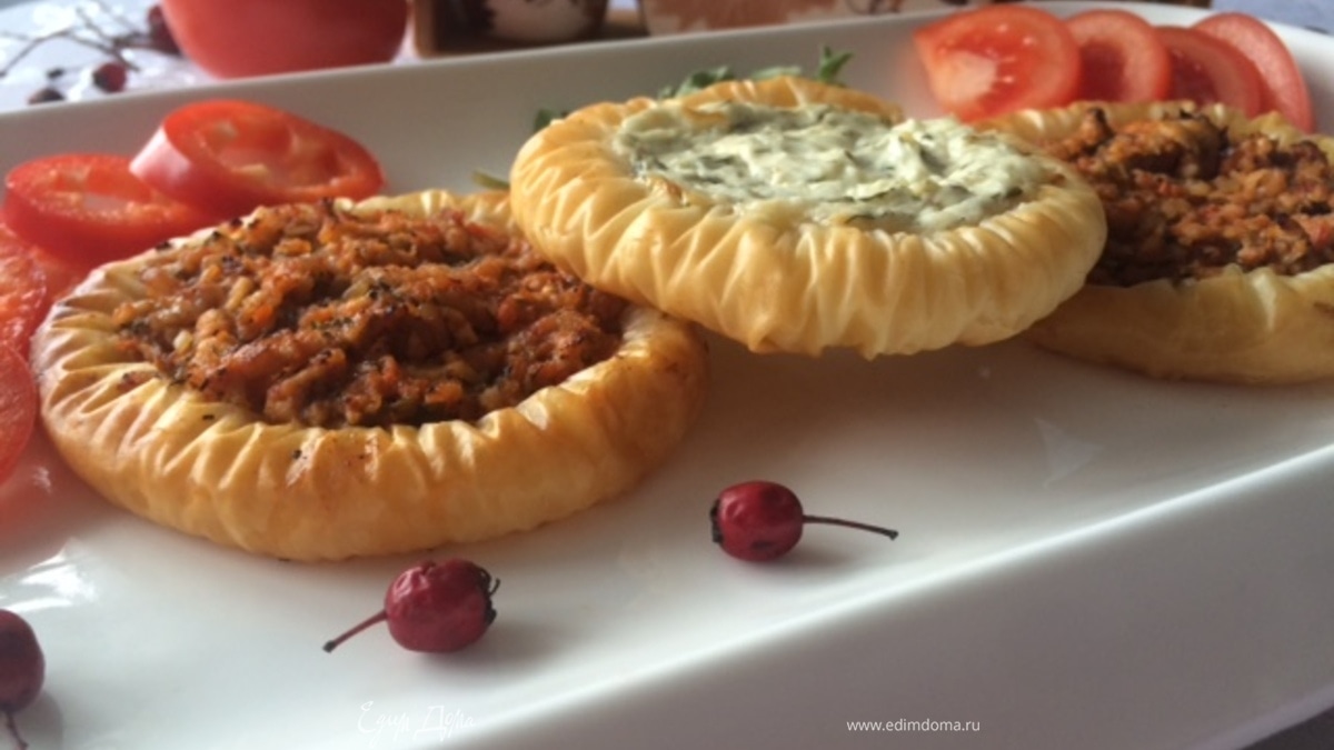 "гнезда" из теста фило с двумя начинками