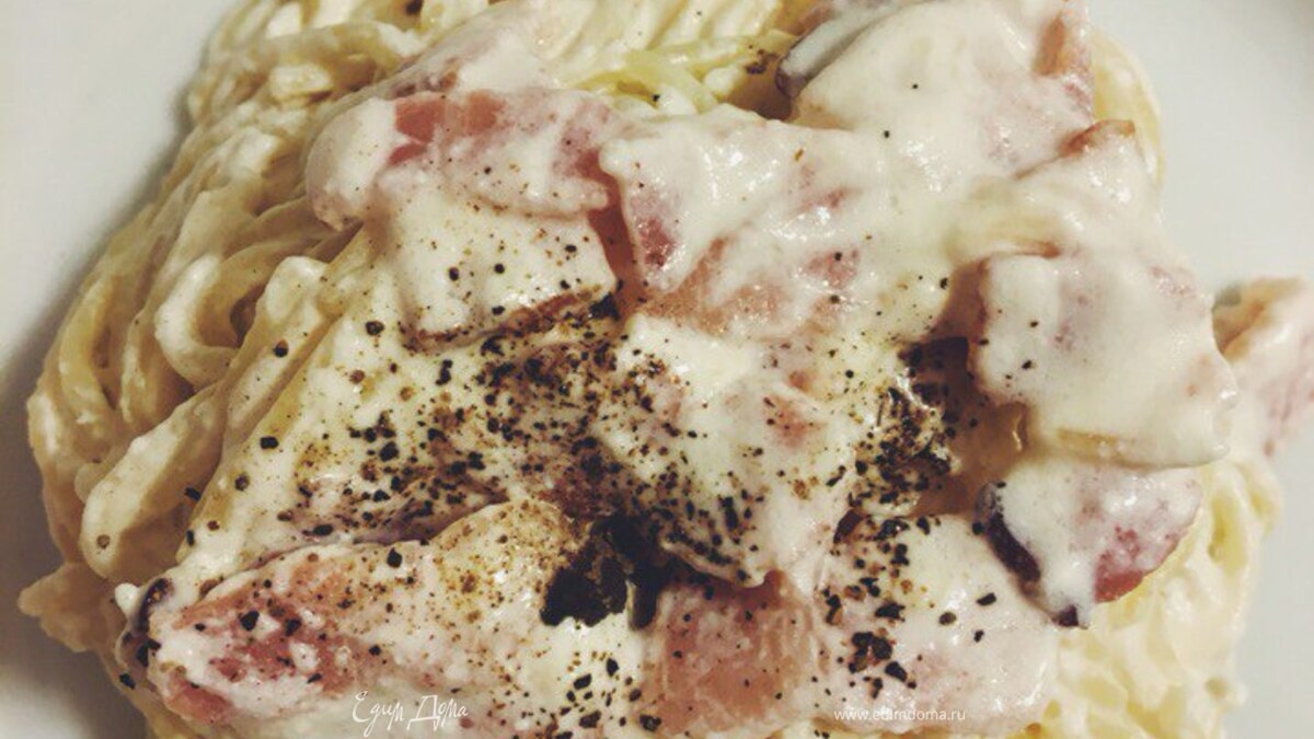 Рецепт пасты карбонара с беконом и сливками.
