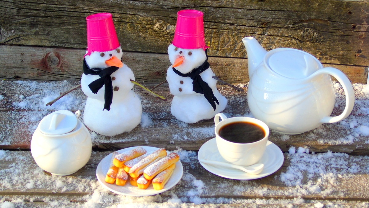 Очень быстрое печенько к чаю, отличное решение для утра! Тесто по сути для вафель, но я решила его использовать и в формах для печенья, что хочу сказать, печенье со стола улетело первым) А угощать печеньками вас будут эти милые снеговички, которых слепили муж и сын)