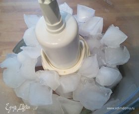 Для рецепта понадобится 250 г ледяной крошки. Я пробила кубики льда в блендере, переложила их в миску и поставила в холодильник.