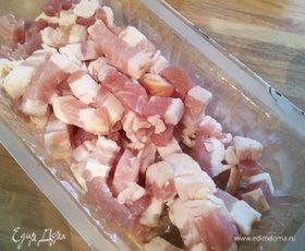 Ещё понадобится мелко нарезанный бекон или сало с прослойкой без шкурки.