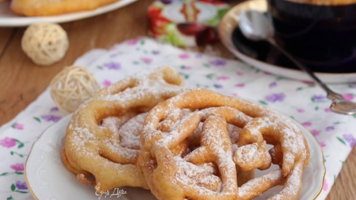 В небольшой кастрюльке разогреть хорошо масло. Тесто отсаживать в масло по спирали (понадобится небольшая сноровка, не сразу получается). Обжарить блин с одной стороны до золотистого цвета, аккуратно перевернуть и обжарить вторую сторону.