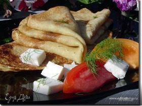 Блины универсальные, можно подавать с любыми наполнителями. Я для своих сладкоежек взбила сливки. Приятного аппетита!