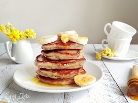 Рецепт увидела в интернете и немного озадачилась. Но мои молодцы в один голос призвали рискнуть. Вот так я их и сделала. Получилось вкусно! И что немловажно — быстро. При небольшой сноровке можно печь на двух сковородках даже на завтрак!