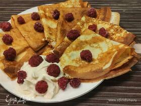 Выпечь блинчики на раскаленной смазанной тонким слоем масла сковороде. Подавать теплым! Приятного аппетита!