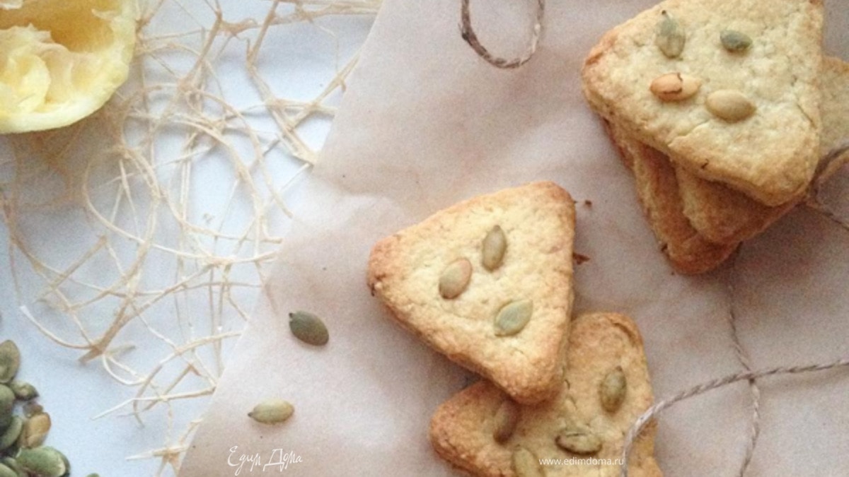 - Шаг 3Посыпьте поверхность стола мукой, раскатайте тесто толщиной в 1 см. Выберите какой формы вы хотите видеть ваши печеньки, украсьте их несколькими тыквенными семечками и отправьте их в разогретую духовку на 15-20 мин.