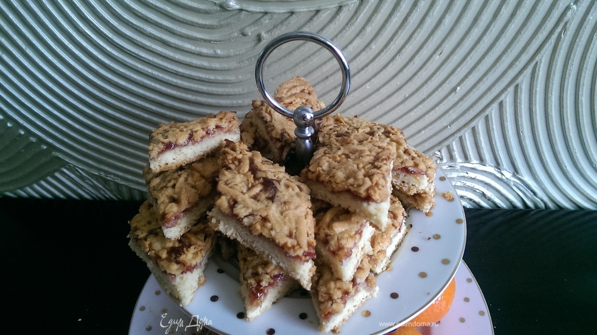 Ставим в духовку при температуре 200°С на 20-30 минут (зависит от густоты варенья). Готовый блин разрезать на ромбики. Приятного чаепития!