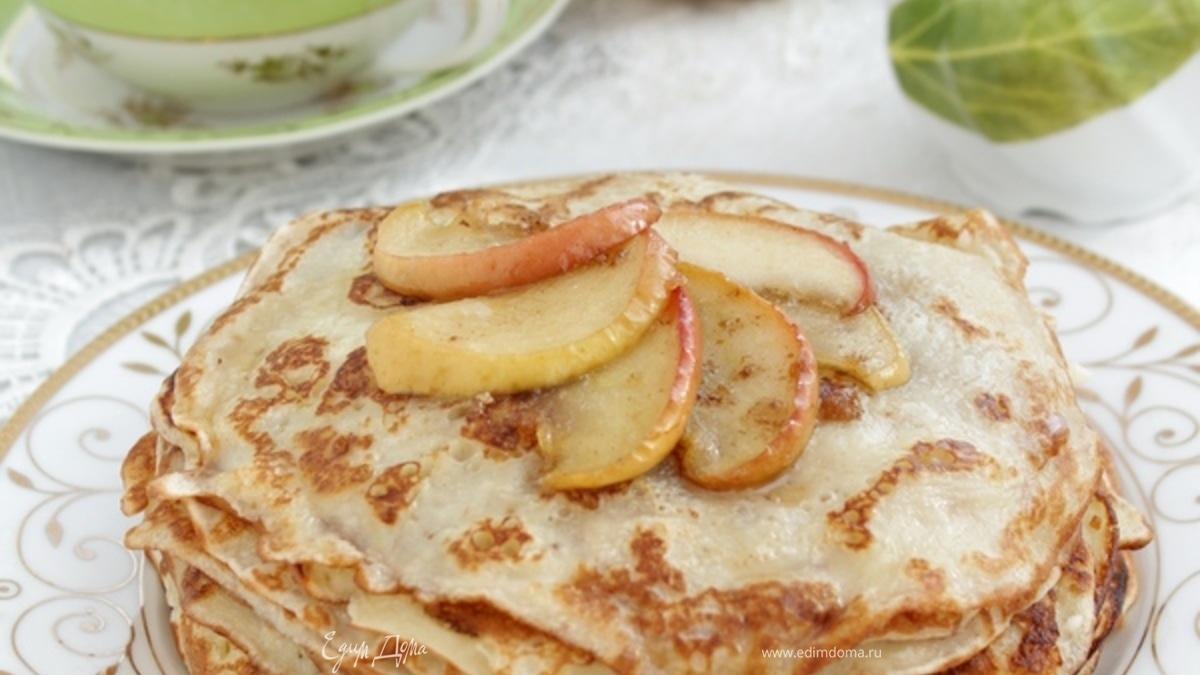 Ароматные блинчики с яблочным припеком и запахом корицы.