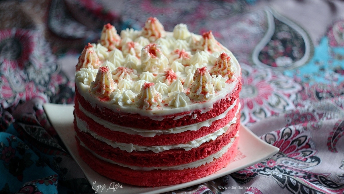 Собираем торт. Если нам важен внешний вид торта, но для начала нужно обрезать бока у коржей, так они не только будут лучше смотреться на "голом" торте, но и уберется лишняя корочка. Для этого можно взять съёмную форму с острыми краями немного меньшего диаметра, чем наши коржи, и обрезать ею. Или с помощью круглой тарелки — приложить к коржу и аккуратно ножом срезать лишнее. Все коржи смазываем сиропом с помощью кисточки. Чередуем коржи и кремы: корж без какао — сырный крем — корж с какао — масляный крем и т.д. Самый верхний корж переворачиваем дном вверх и покрываем сырным кремом. Из остатков масляного можно отсадить розочки или другие украшения. Те обрезки, которые у меня остались от коржей, я смолола в кофемолке, получились цветные крошки — ими можно посыпать те же розочки для цвета или обсыпать бока, предварительно смазав их немного кремом — в общем, на что хватит вашей фантазии.