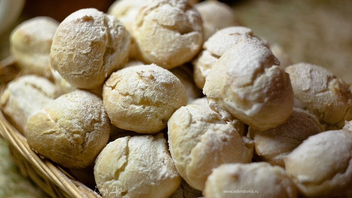 - Шаг 1Для выпекания готовое тесто отсадить на противень с пекарском бумагой — можно с помощью кондитерского мешка, можно просто чайной ложкой. Выпекать 10 минут при 210°C, потом 25-35 минут при 180°C. Остудить. Лучше немного передержать, чем недодержать, иначе тесто может опасть.