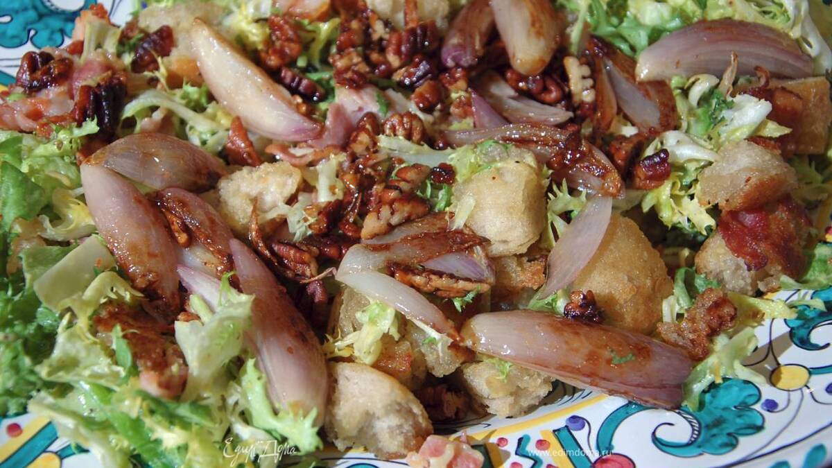 Лионский салат с карамелизированным луком и орехами