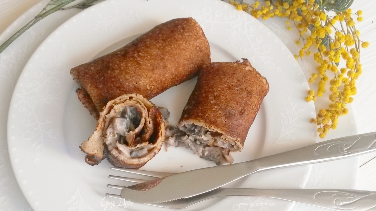 Фаршируем блинчики грибной начинкой. Приятного аппетита!