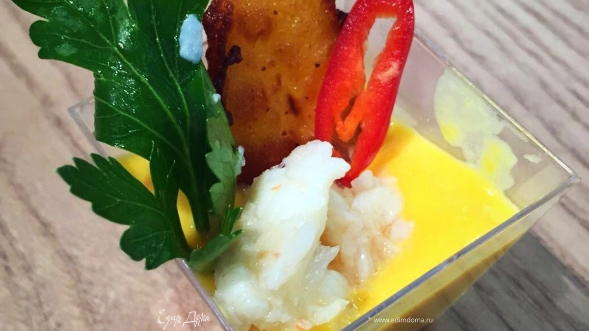 Краб с пикантным пюре из тыквы и медовым тыквенным чипсом