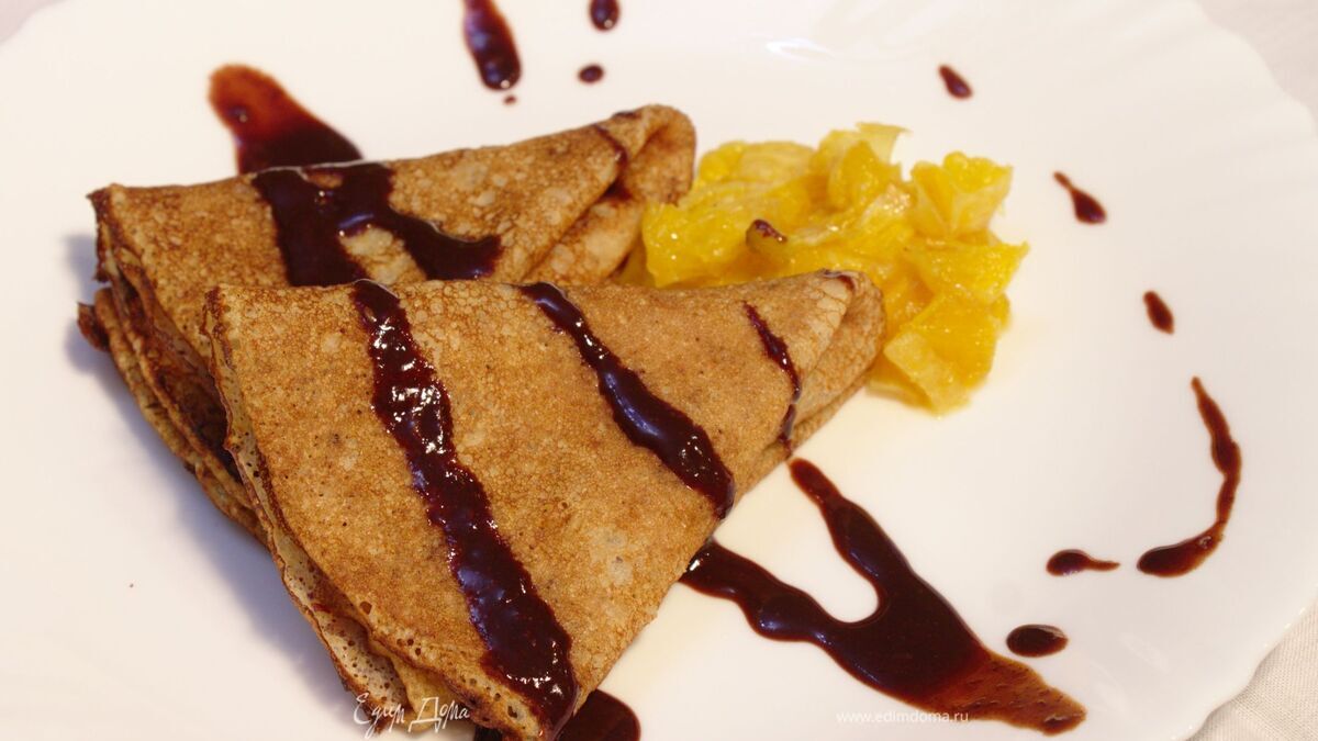 Ореховые блинчики с апельсинами под шоколадным соусом