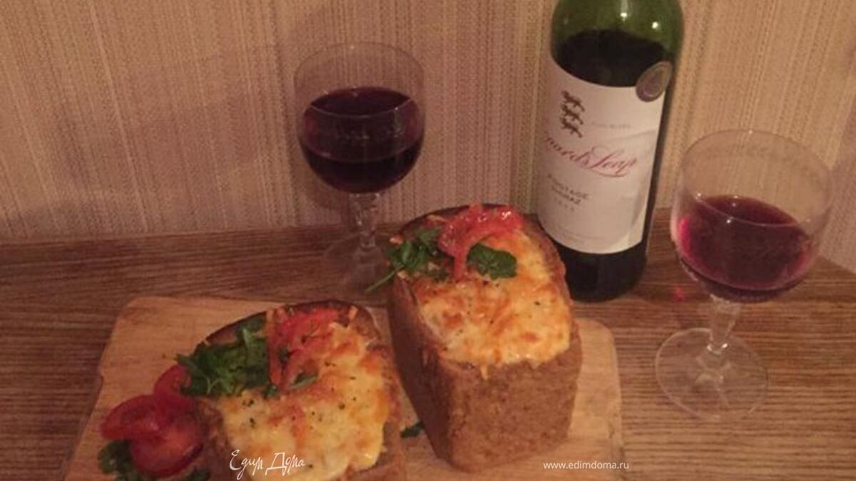 - Шаг 4Из буханки хлеба вытащить серединку. Внутренние стенки протереть чесноком (по желанию).