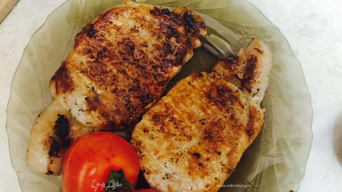 Расколить сковороду. Я использовала сковородку-гриль и без масла. Обжарить по 10 минут с каждой стороны, периодически переворачивая. Блюдо готово. Приятного аппетита:)