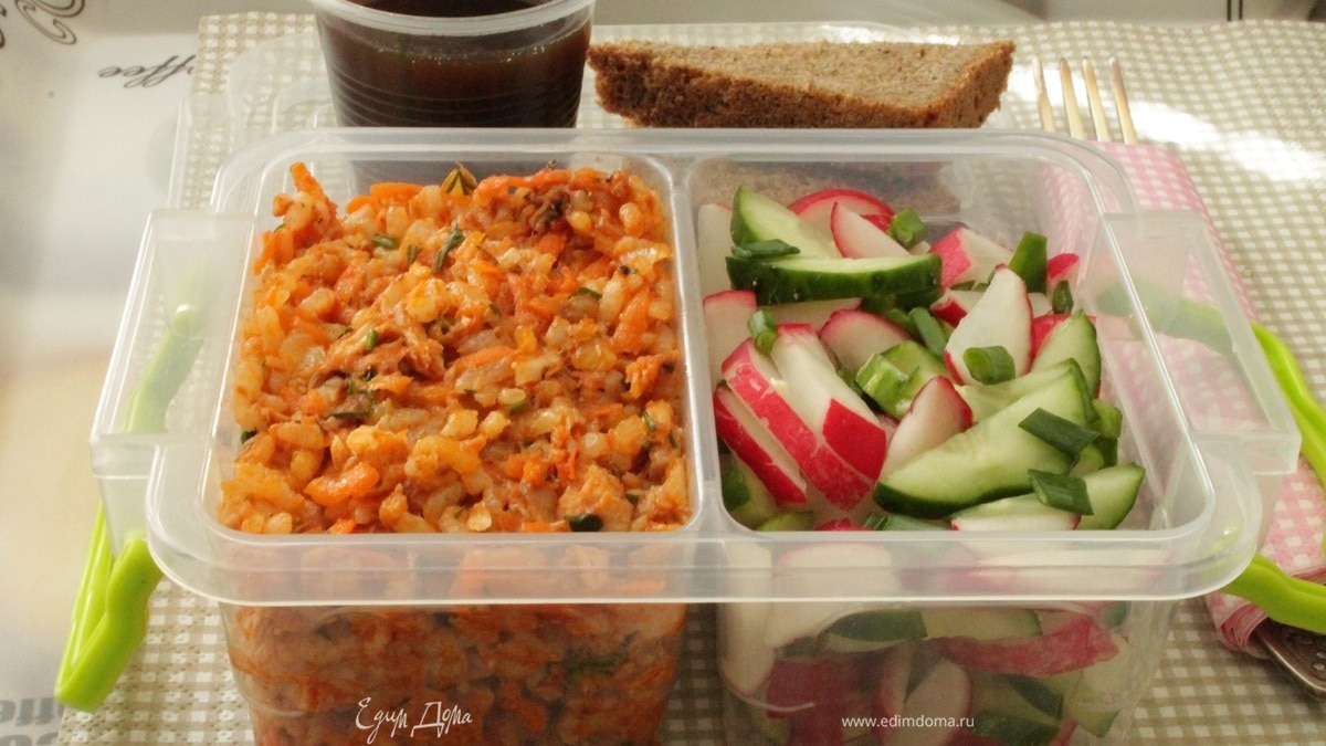 Подавать с любым овощным салатом. Если вы решили взять с собой на работу или на дачу, перекладываем в контейнер салат и закуску. Приятного вам аппетита!
