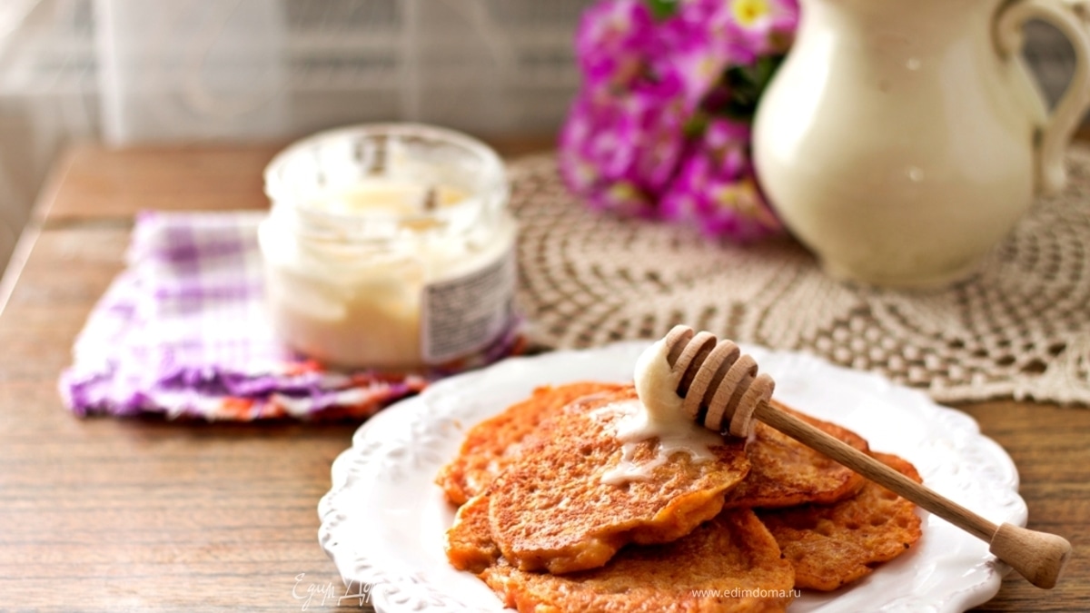 Подавать с медом и джемом. Если молоко заменить водой и не добавлять яйца, получится вполне постное лакомство.