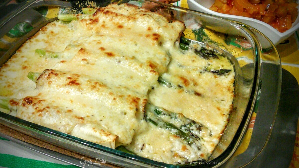 Каннеллони со спаржей под соусом бешамель