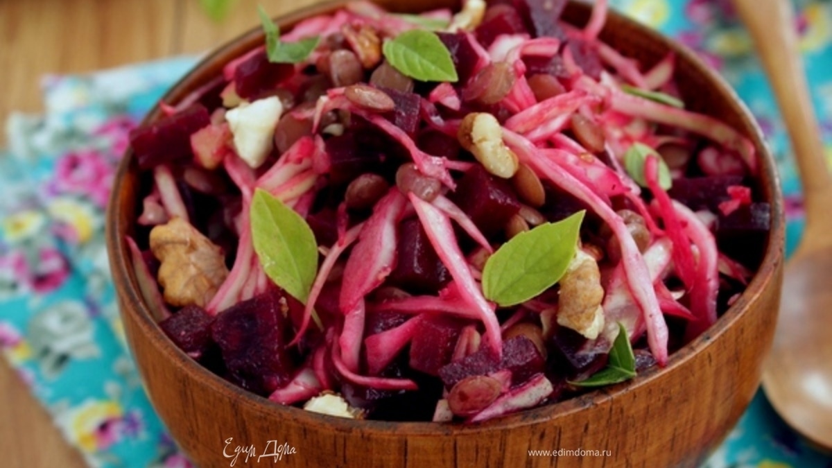 Салат из свеклы, чечевицы и капусты
