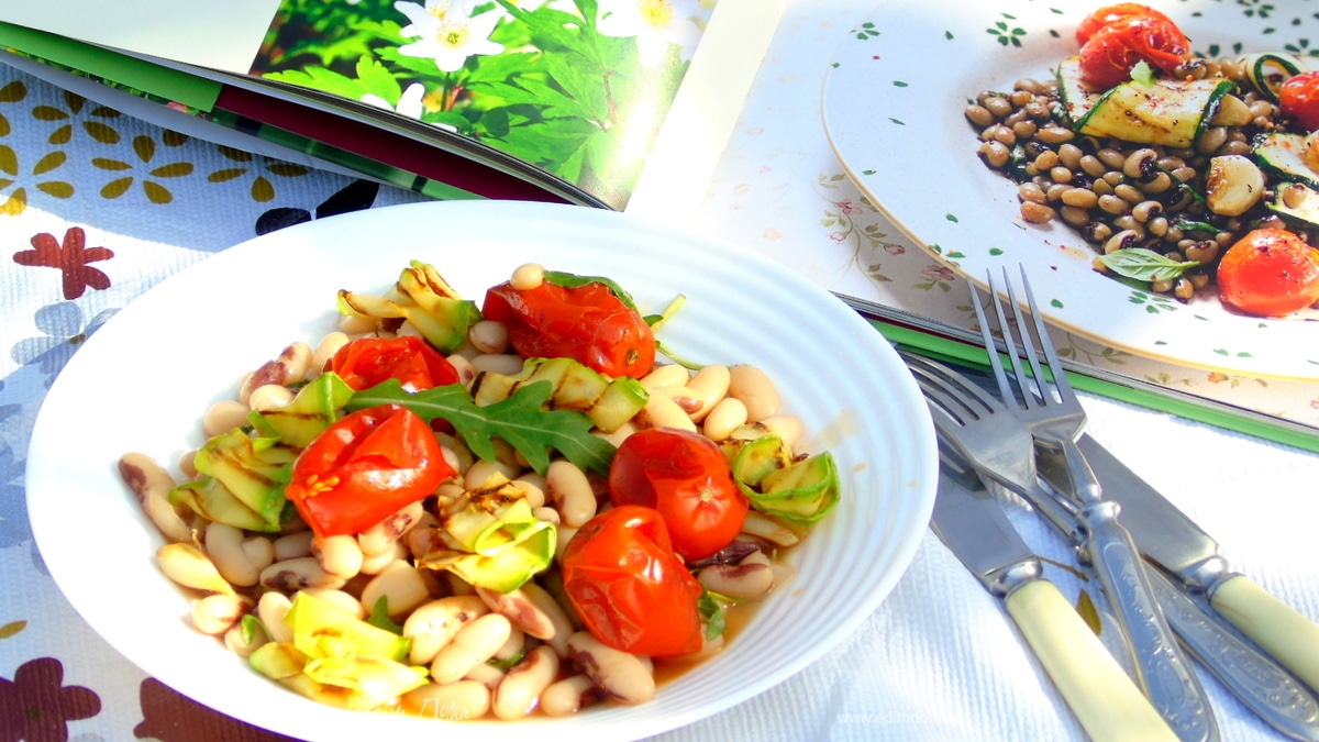 Выложить фасоль на тарелку, сверху разложите цукини и помидоры с чесноком. Полейте соком оставшимся после запекания помидоров. И немедленно все съедайте)))) Но и холодным он тоже очень вкусный. Приятного аппетита и вкусного поста!!!