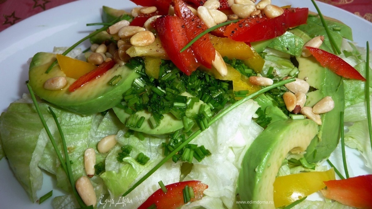 Последний штрих — кедровые орешки (предварительно слегка поджарить на сухой сковороде), засыпать сверху.