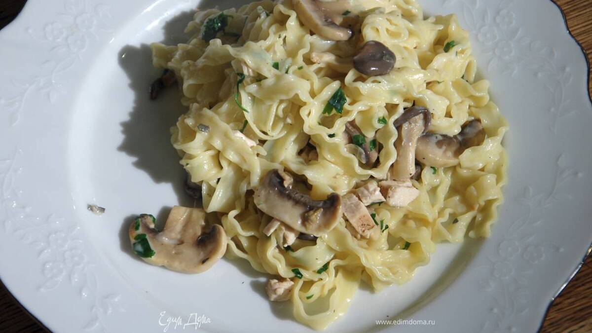 Паста с индейкой и грибами