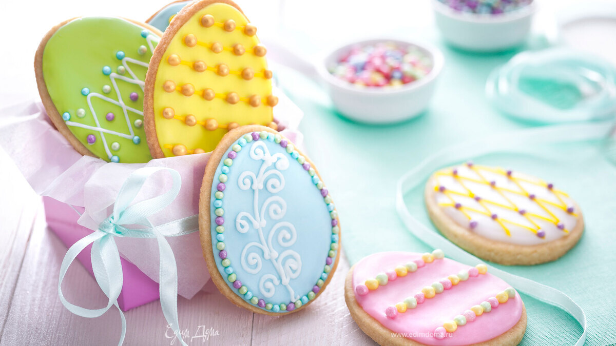 - Шаг 2Обернуть тесто в пленку и положить в холодильник на 40 минут. Раскатать тесто в пласт толщиной примерно 5 мм и вырезать печенье в форме пасхальных яиц.