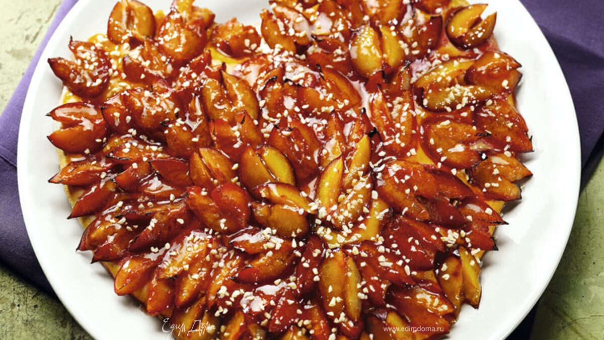 - Шаг 4Декор: Протереть через сито абрикосовый конфитюр и довести до кипения в небольшой кастрюле. Залить сливы еще теплым конфитюром и посыпать миндалем. Посыпать сердце сахаром. Подавать в теплом или холодном виде.