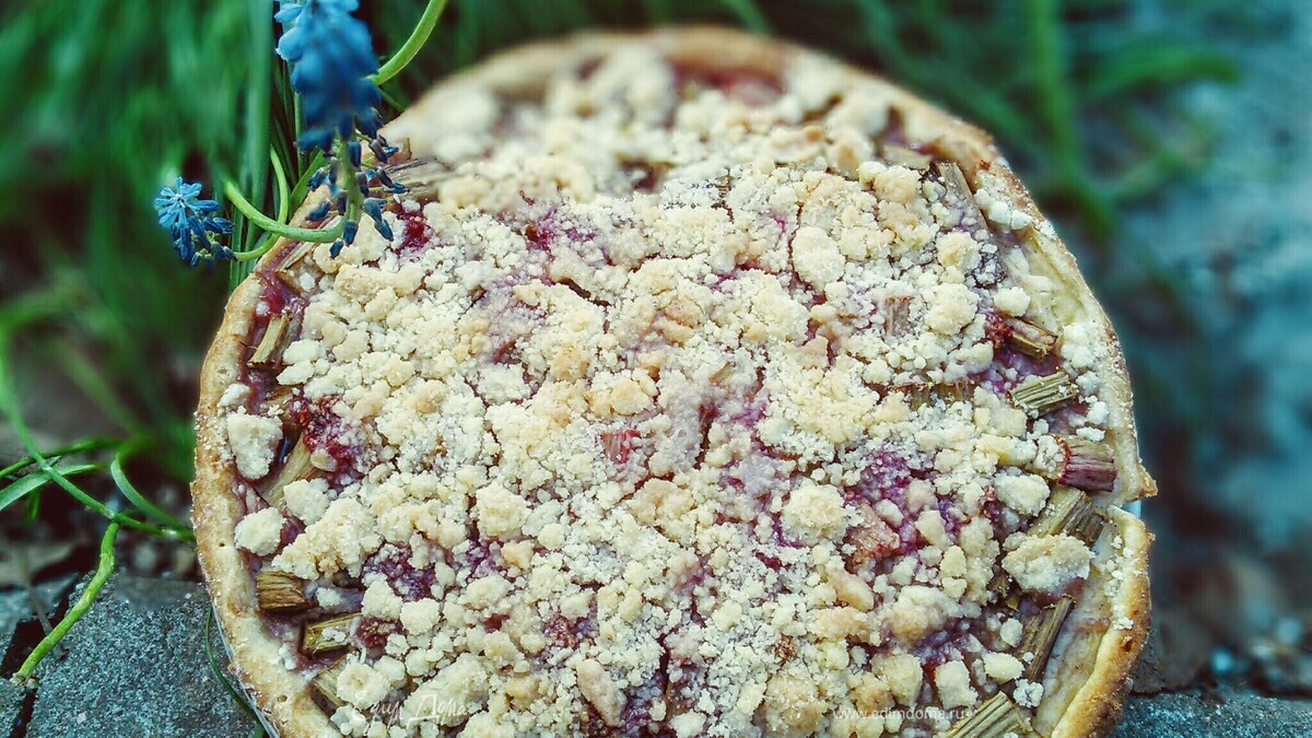 Ревеневый тарт с ванильным пудингом и штройзелем