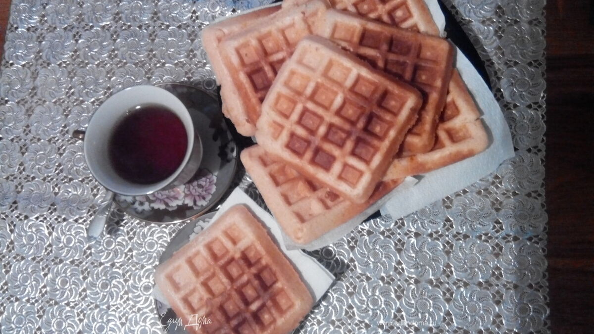 - Шаг 2Масса получится густая, я слегка разравнивала в формочке. Выпекается за 2-3 минуты. Внимание! Очень нежные вафли, осторожно снимала, с помощью лопатки. Когда остынут, немного твердеют. Всем приятного чаепития!