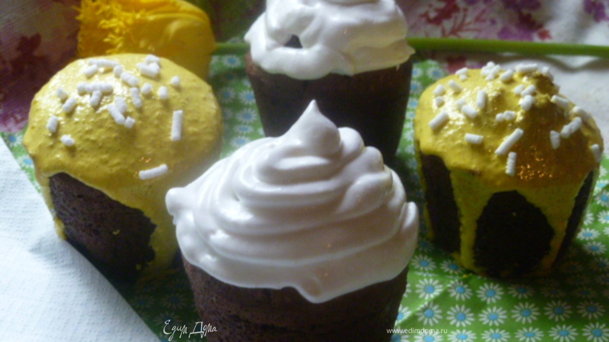 Я предлагаю вам попробовать испечь куличики на соде и на белках, с добавлением какао.