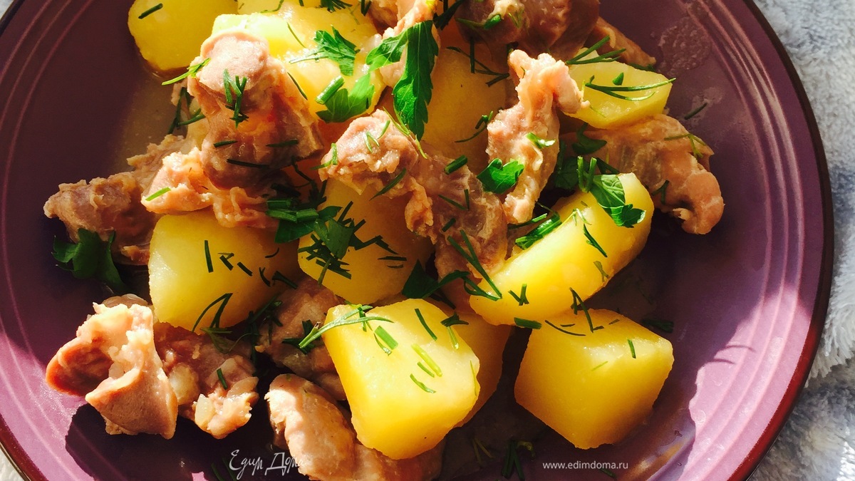 Тушеные желудочки с картофелем
