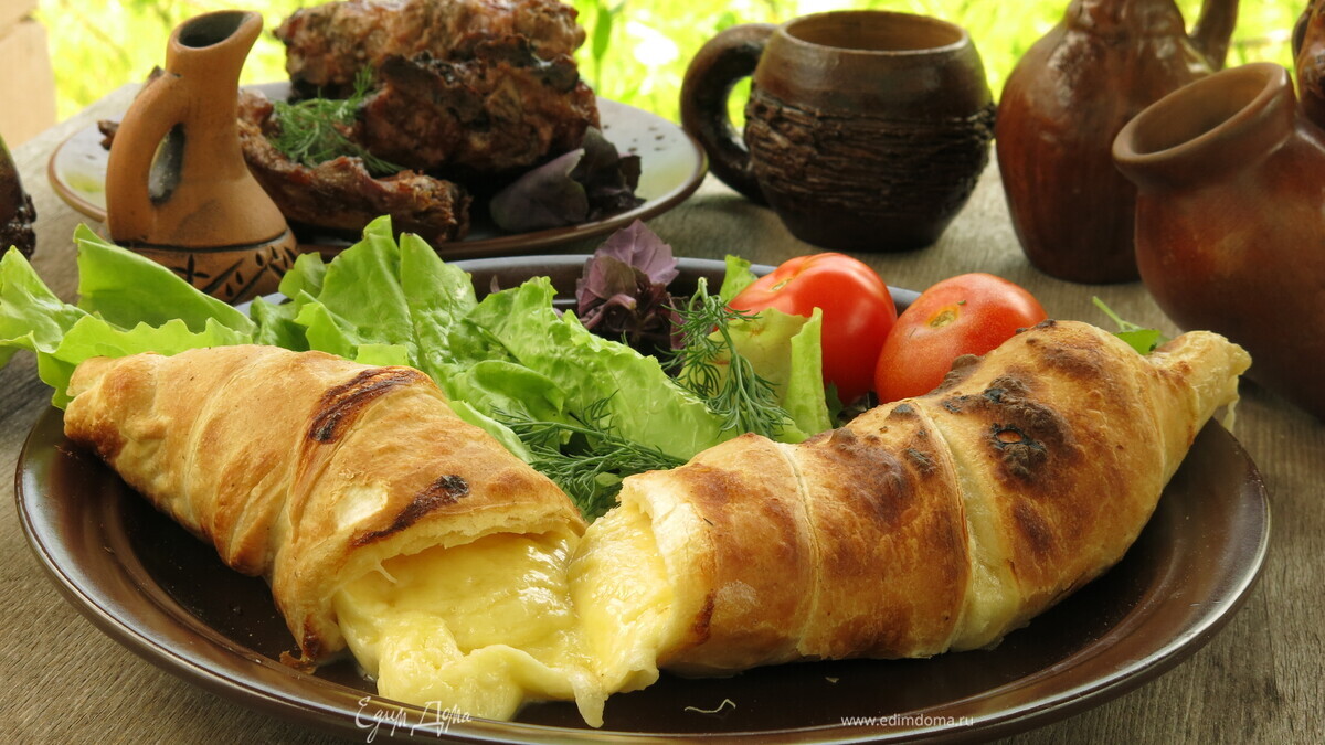 Попробуйте хачапури, приготовленные на жаре углей. Кусочки сыра сулугуни на шампуре заворачиваются в тесто и подрумяниваются. Стоит только разломать хачапури и расплавленный сыр выльется на тарелку, пока все горячее, кусочком тесто собираем вкуснятину. Приятного аппетита!