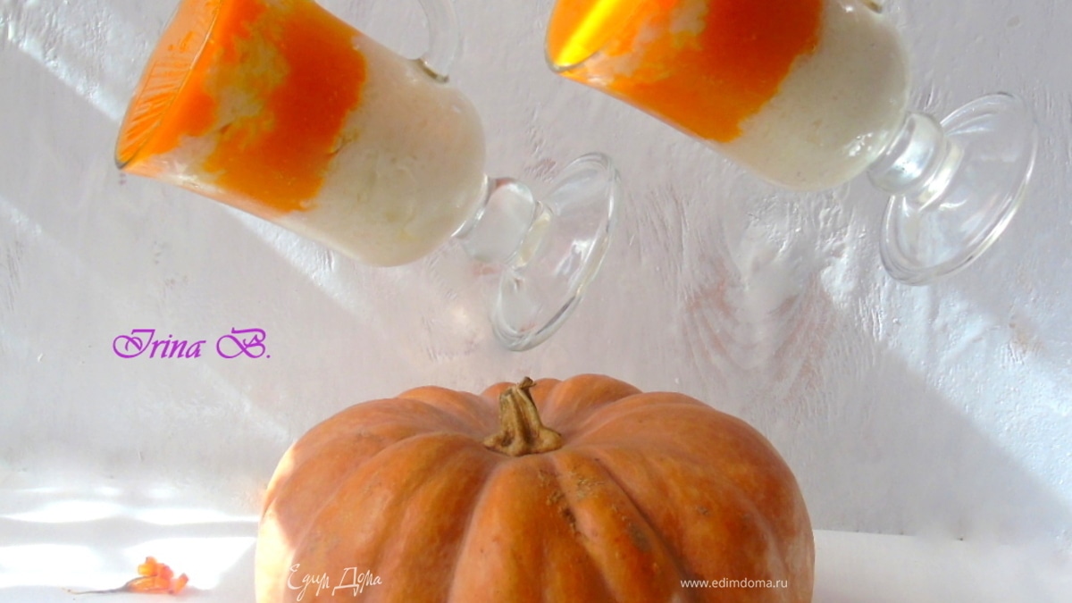 Не могла пройти мимо такого яркого и полезного десерта. Но.. Точно описанию следовать не стоит. Рис не впитал воду даже за ночь! В итоге сварила рисовую кашку просто по своему домашнему рецепту. Цедры среднего апельсина слишком много, полный рот цедры, как будто одну её и ешь. Перебивает вкус тыквы напрочь, а жаль. У меня была очень вкусная тыква, арбузом пахла. Процент сливок не указан, взяла 20% - зря. Не получился такой красивый жёлтенький слой. Вообщем вкус и вид не тот. Всё испорчено, не понравилось:( Надо пробовать сделать по другому, идея то хорошая.