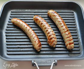 Готовьте колбаски на свежем воздухе на гриле или же дома на смазанной маслом сковороде гриль, периодически переворачивая колбаски до готовности. На обычной сковороде лучше готовить под крышкой на небольшом огне.
