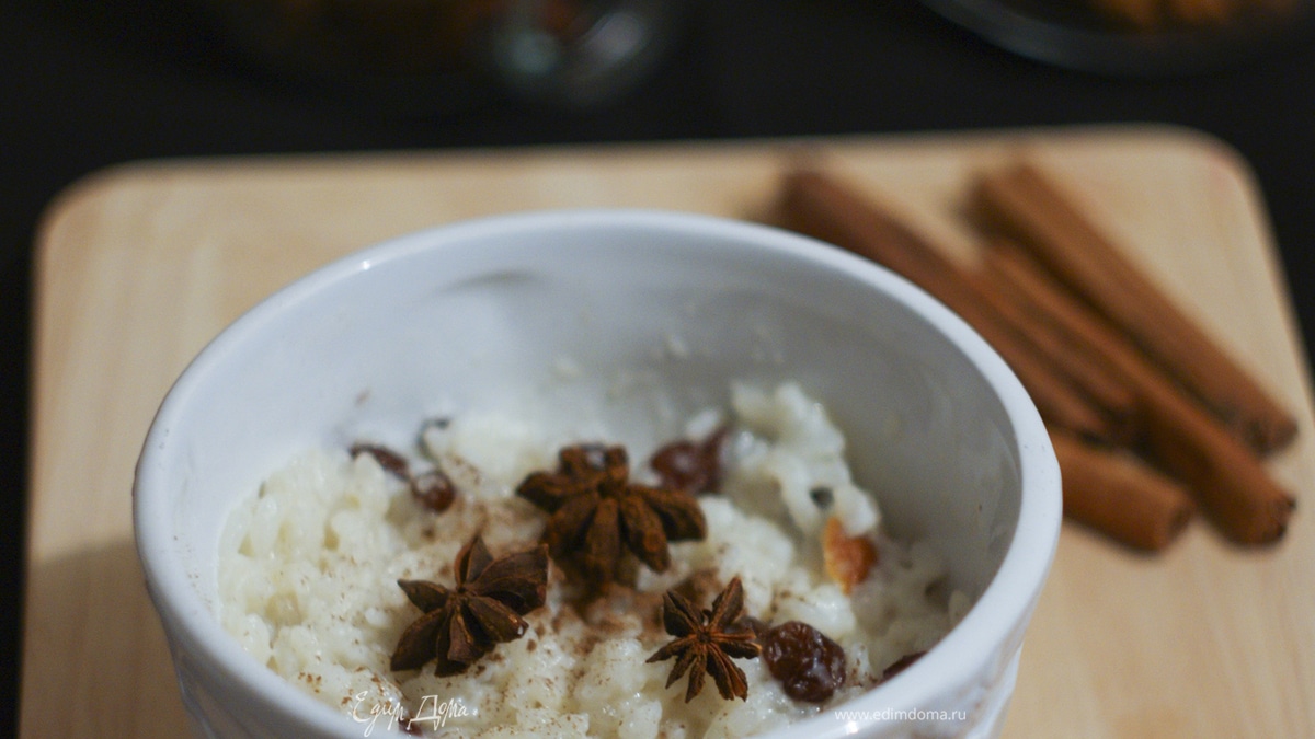 Или, пока рис только начал вариться, почти вскипятить молоко и добавить к нему цедру апельсина, корицу и бадьян — ароматизировать его. И потом вытащить специи и залить рис молоком уже без них.