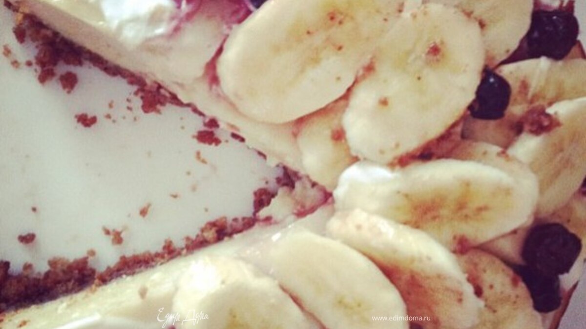 - Шаг 1Далее готовим саму массу нашего чизкейка, туда кладем творог, я использовала обезжиренный нежный творог, туда же кладем бананы, здесь на ваше усмотрение, я положила 2 шт, но 1,5 тоже хватит, смешиваем миксером, добавляем сюда же сметану, муку и сахар, тщательно все перемешиваем, здесь контролируйте, если получилось очень жидкое тесто, то добавьте муки на глаз, главное не переборщить.
