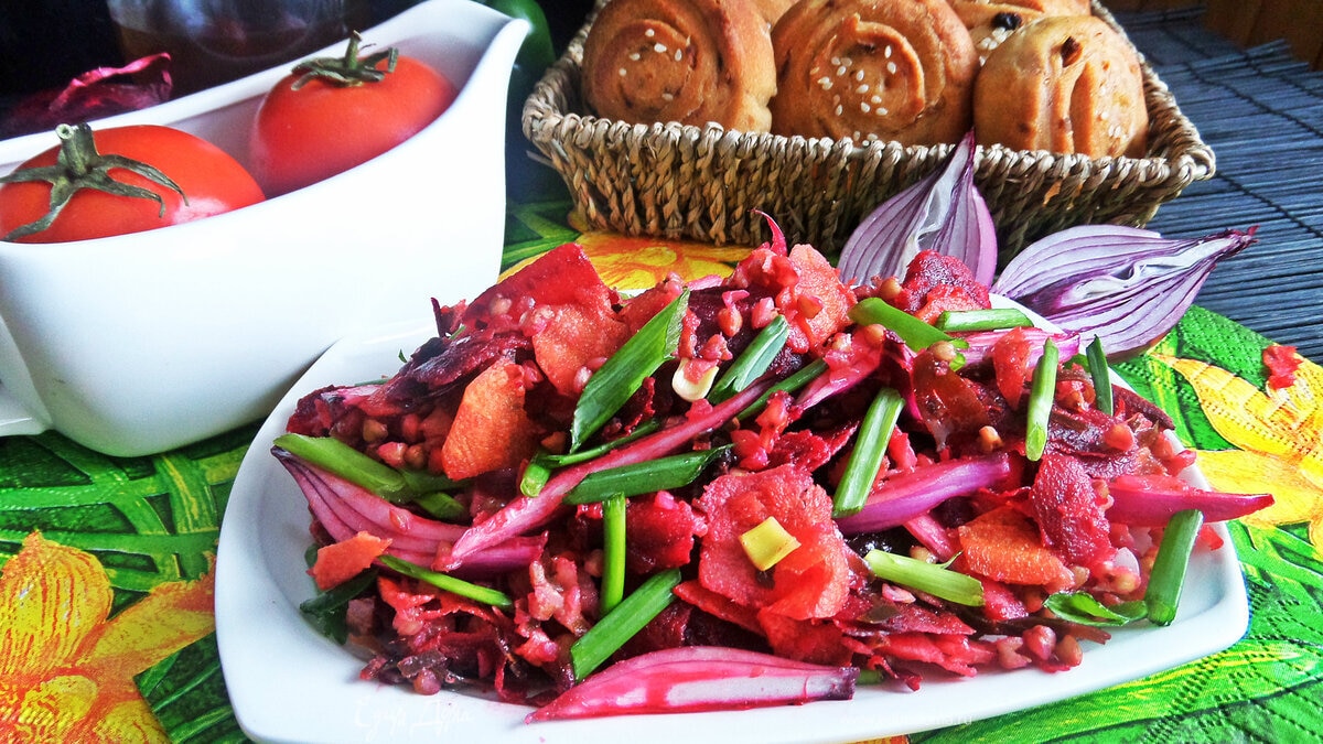 Готовим все овощи. Свеклу сырую натереть лучше так, полуслайсами. - Шаг 1