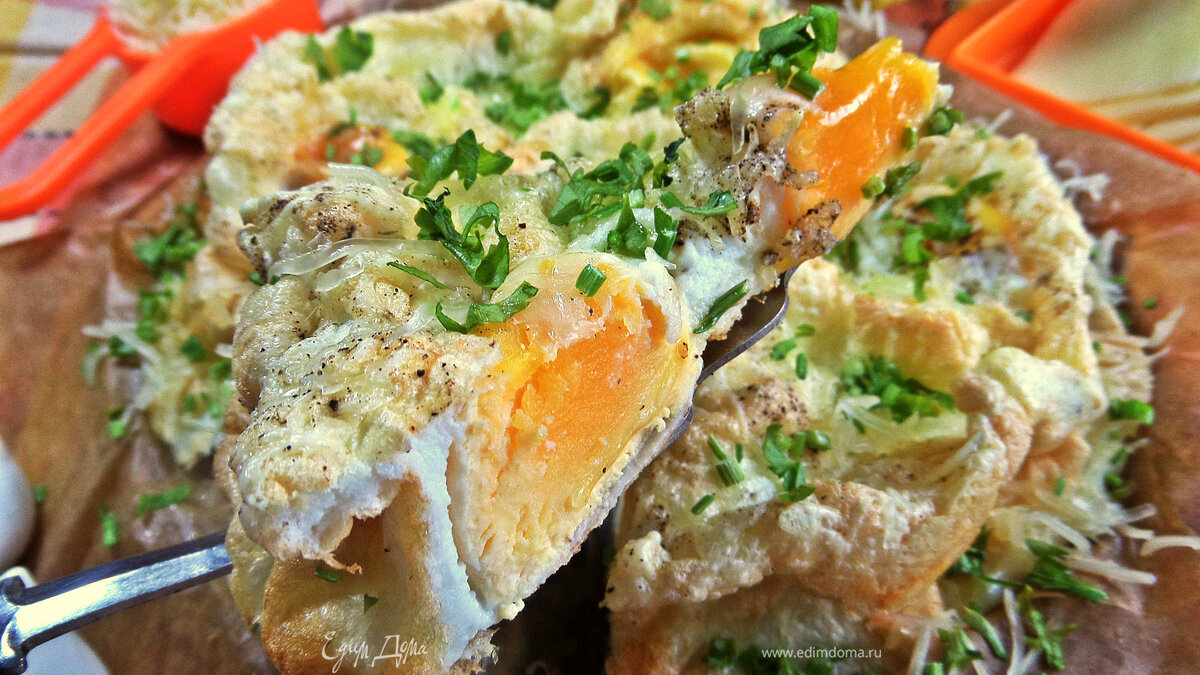 Запекаем в духовке при 180°С минут 15х10 минут при 200°С. Смотрим, чтобы желтки только схватились, так вкуснее будет.