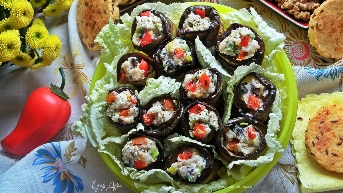 Летом самое время накрутить такие аппетитные рулетики из баклажанов с различными начинками! Предлагаю свой вариант пикантной