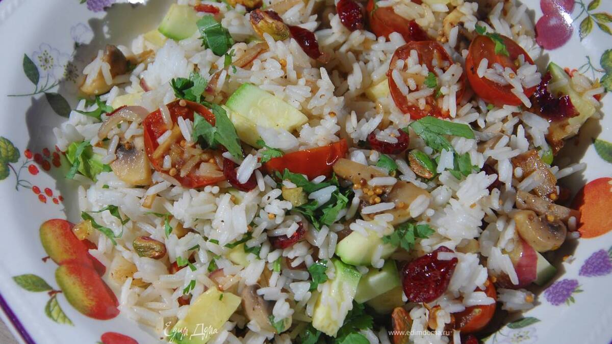 Нарезанные помидоры, цукини, клюкву и фисташки добавить в сковороду, все перемешать и обжарить еще немного. - Шаг 10