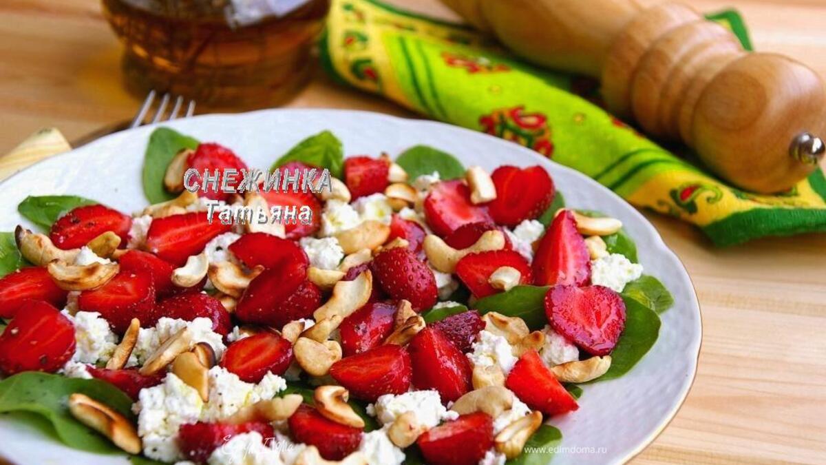 У нас в разгаре сезон клубнички, сладкой и такой ароматной! Да и в целом лето - это всегда много-много свежих овощей, ягод, фруктов, сочетающихся со свежим воздухом на природе!! Поэтому хочется всегда легких вкусных блюд и оригинальных сочетаний. Это как раз сезон, когда есть возможность пробовать новые вкусы. Начну, пожалуй, свой клубничный сезон с такого интересного, приятного и ароматного салата, который готовится быстро, смело может стать вкусным ужином или полезным завтраком даже для мужчин, питательность в салате сочетается с пользой! ![]()