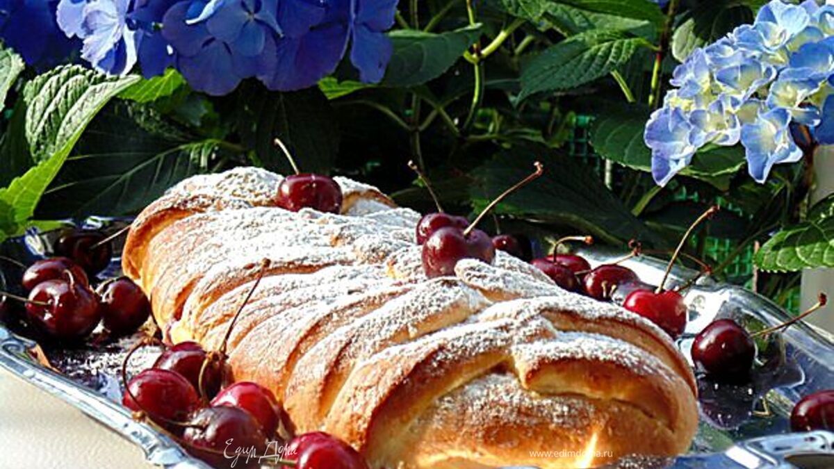 Нежная, как пух, плетенка с вкуснейшей начинкой, которая стала моей любимой, из сочной вишни, яблока, грецкого ореха и корицы. Такая плетенка хороша как на завтрак, так и на полдник. Советую готовить со свежими дрожжами, с ними выпечка получается гораздо вкуснее.