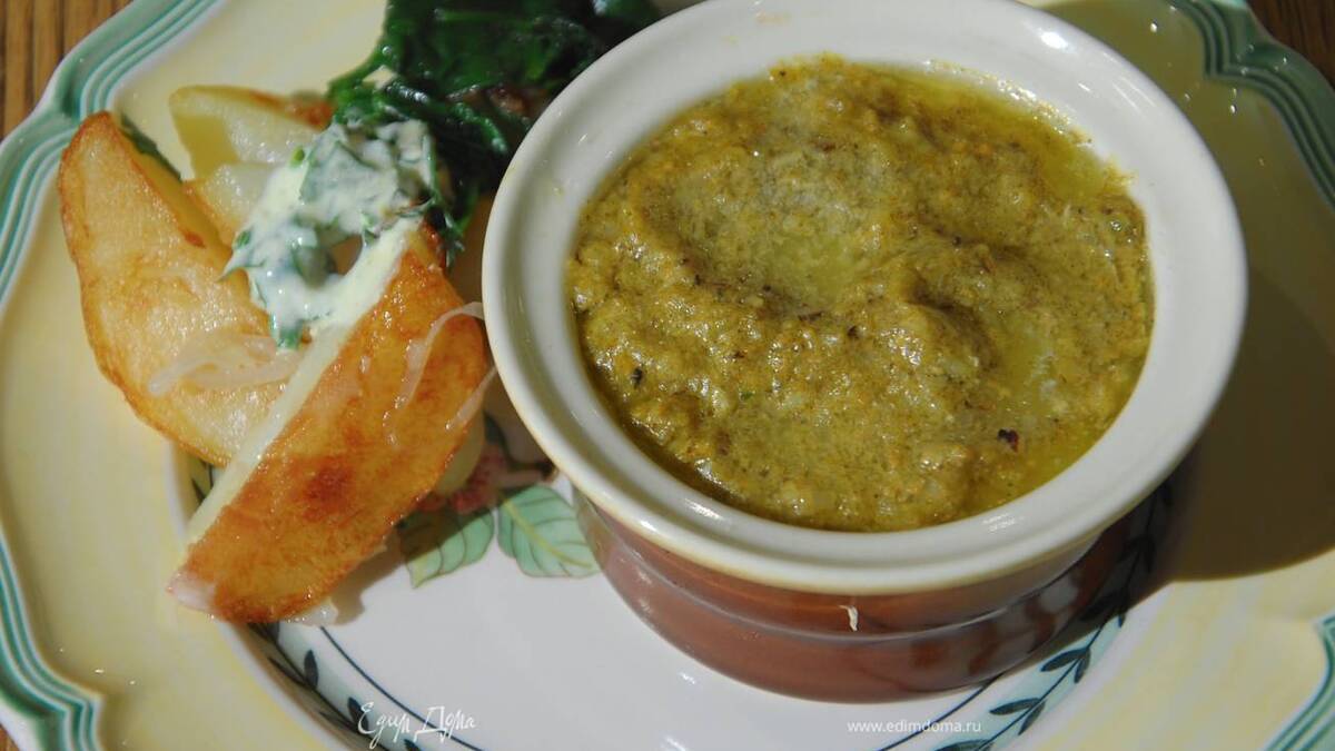 Разложить паштет в небольшие керамические формы, сверху поместить по 1/2 ч. ложки предварительно размягченного сливочного масла и дать ему полностью растаять. - Шаг 7