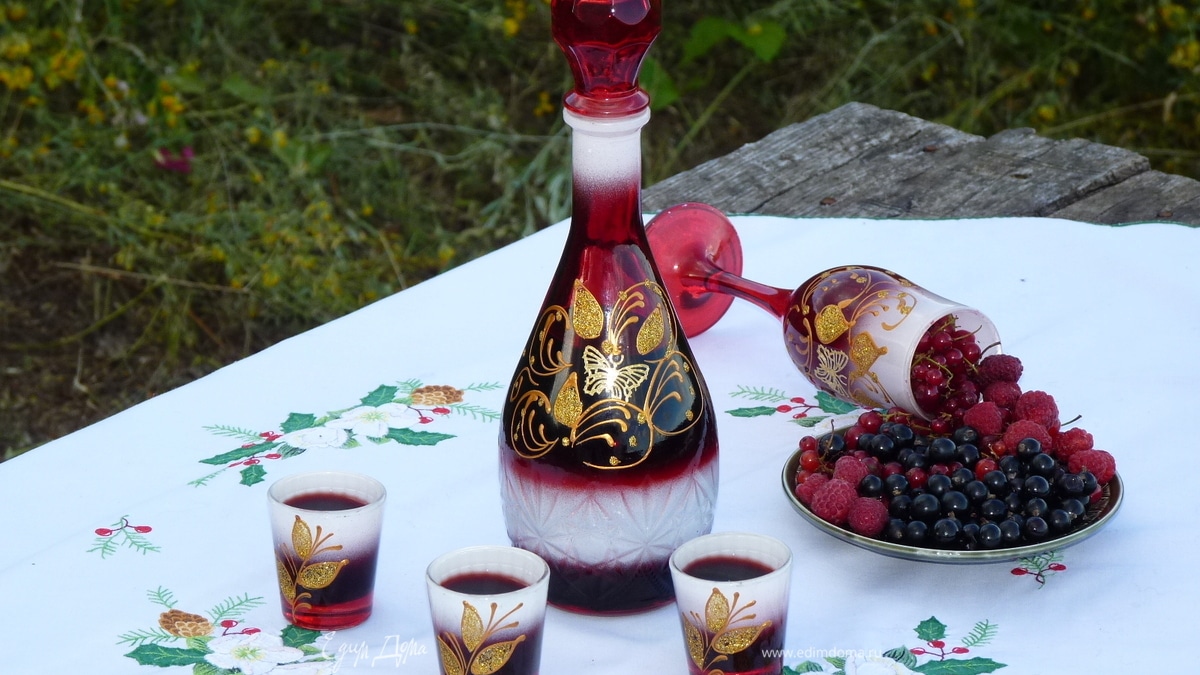 Предлагаю попробовать и вам! Принцип такой: ягоды по мере созревания засыпаются в банку и заливаются водкой. Хотя, в этом году у нас все ягоды одновременно созрели... Ягоды можно варьировать по вкусу и количеству, строгих пропорций нет, можно что-то добавить, что-то убрать или заменить на другие. Количество я указала примерно, т.к. делаю всегда «на глаз».